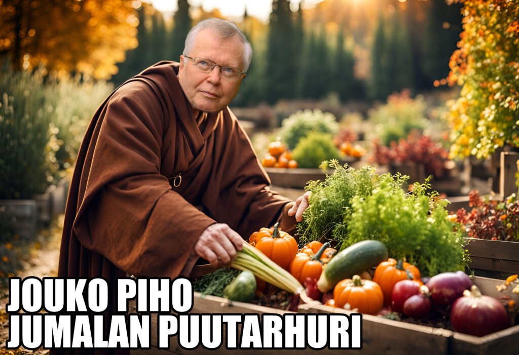 Mukissa tulee olemaan oheinen kuva alatekstillä Jouko Piho Jumalan puutarhuri. Kuvan alla on teksti: ”Herra Jumala asetti ihmisen Eedenin puutarhaan viljelemään ja varjelemaan sitä.”